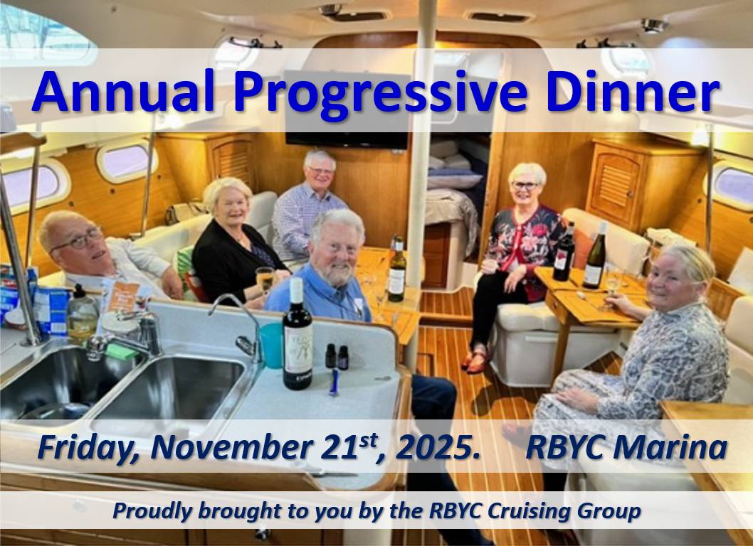 The 2025 annual Progressive Dinner will be held on Friday the 21st November.