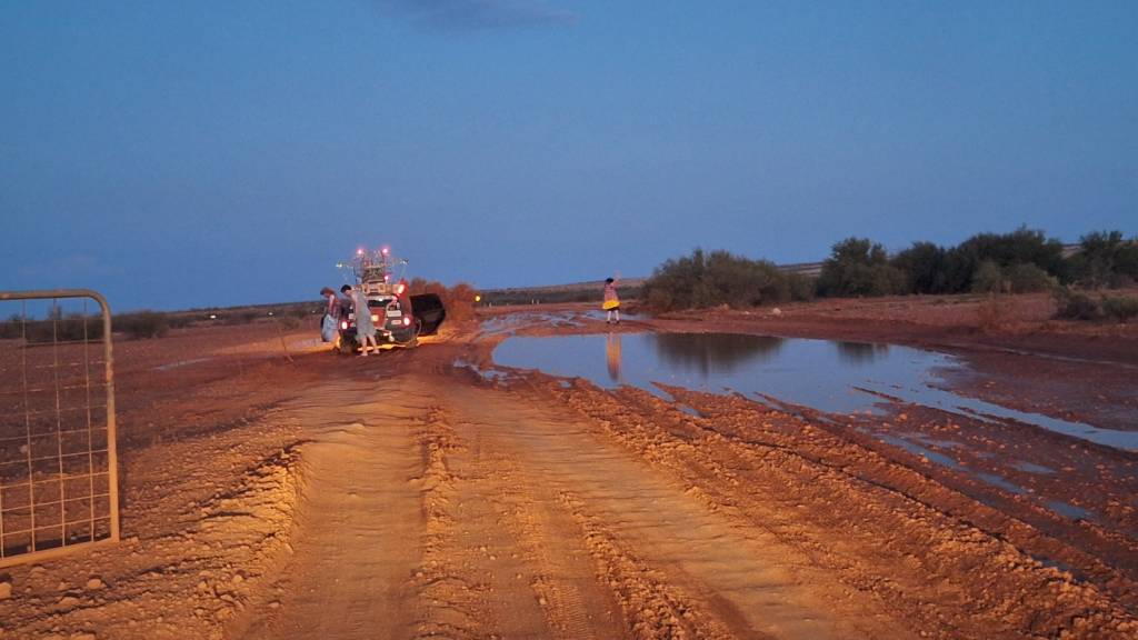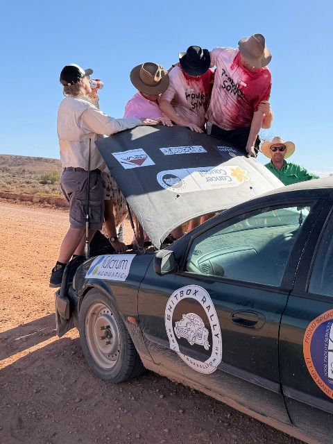 Day 5 – For the Silverton to Bourke leg the sky was bright and clear. There were 10 cars in triage the previous night but all were back on the road in the morning. Unfortunately, Sparky scraped the bottom and ripped some brackets on the fuel tank, which were repaired – however that was just the beginning of the day’s challenges as they also hit a rock, bending the fuel tank and cracking a hose. The day finished very late!