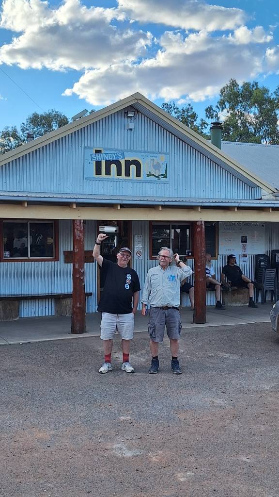 Day 4 – The group passed through a part of the Flinders Ranges and a lot of barren land in South Australia to get to Silverton. It was 586km with 276 unsealed, rough and windy but very scenic with blue sky and mild. An early stop at the Parachilna pub was a pleasant 1hr stop.