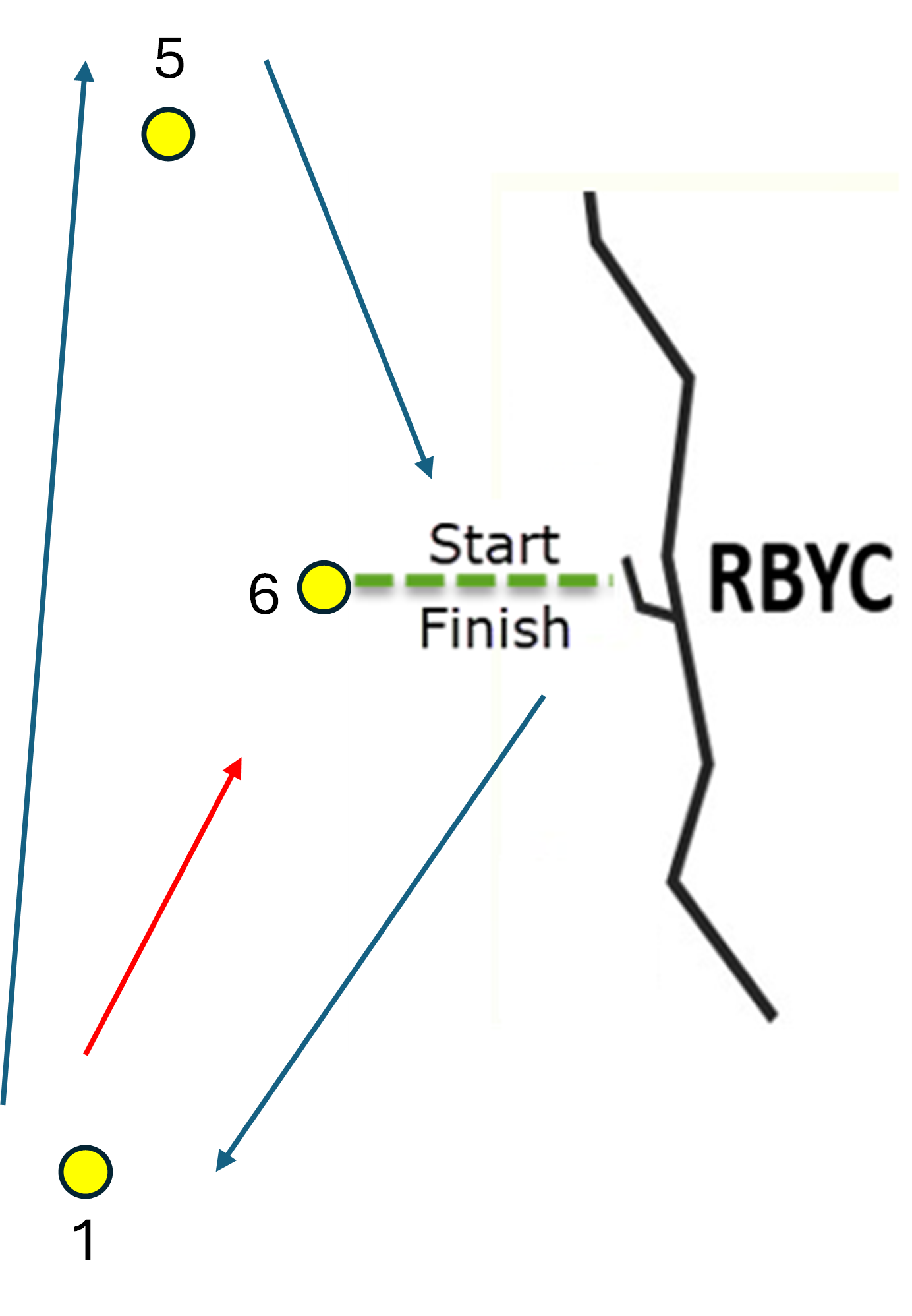 • Number 6 is included in the courses to make sure that boats aren’t sailing both upwind and downwind through the finish line at the same time.