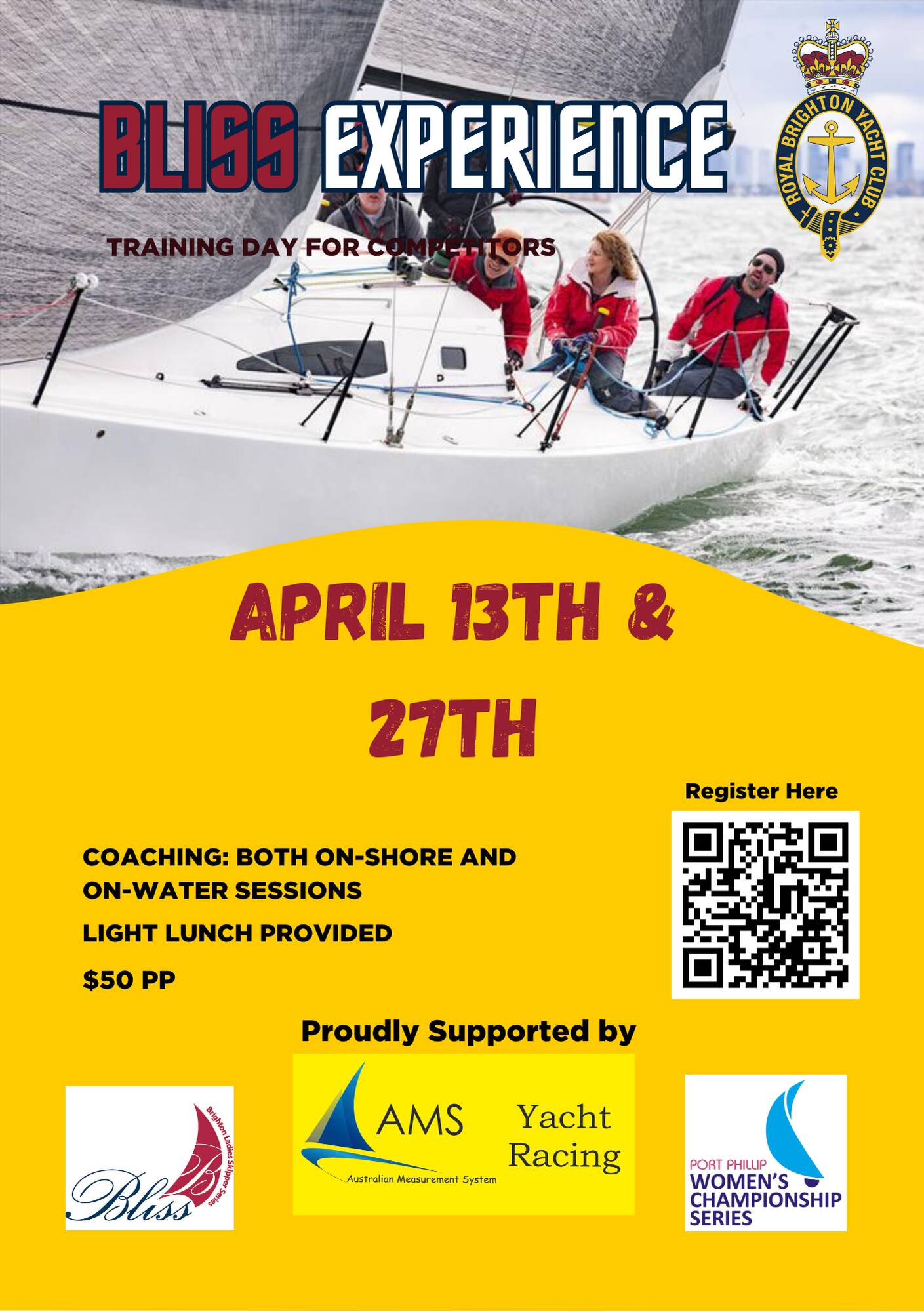 On the 4th May 2025 RBYC will be holding its annual BLiSS Regatta and is part of the PPWSC series as well as a standalone regatta. RBYC is also offering pre regatta training called the BLiSS Experience. This provides the opportunity for female sailors to receive pre race coaching both on and off the water. Participants will receive an on water session , lunch and off water session in the class room Due to the generous support of Yacht Racing Services Association (YRSA) we are able to offer this experience at the subsided rate of $50pp. Places are limited and bookings can only be made for one day here