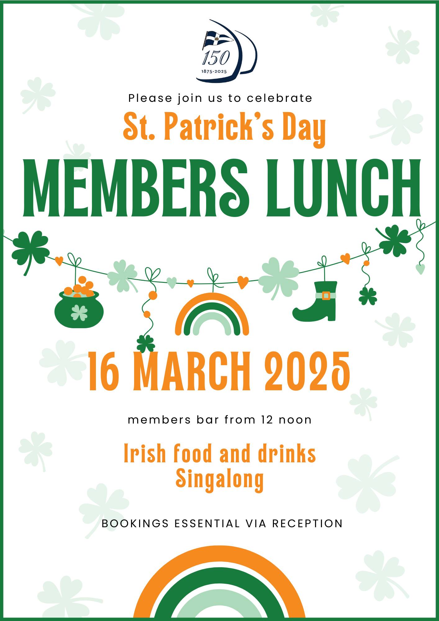 New stock of RBYC 150 yr polos have arrived. Sizing is S - 5XL available in White or Navy. Please visit reception for purchases