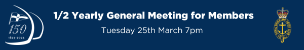 New stock of RBYC 150 yr polos have arrived. Sizing is S - 5XL available in White or Navy. Please visit reception for purchases