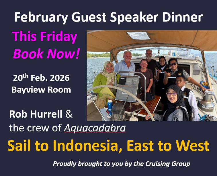 Our first Guest Speaker Dinner for 2026 will be on Friday 20th February. Join Rob Hurrell & his crew as they share the story of Aquacadabra’s participation in the Sail to Indonesia Rally, sailing east to west across Indonesia over four months last year. Indonesia isn’t just a destination. It’s over 17,000 islands, spectacular scenery, […]