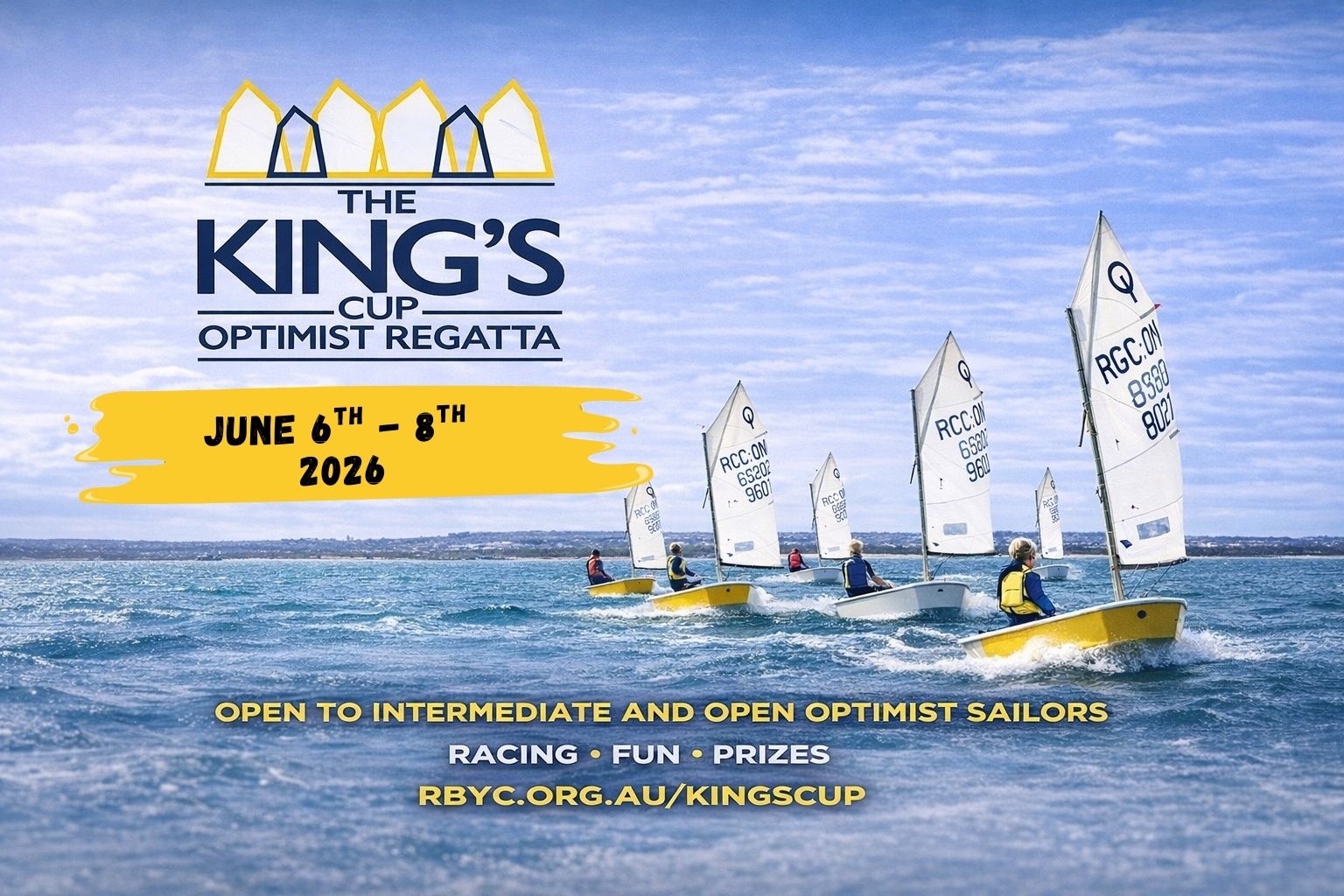 The Kings Cup Regatta Patron: John Bertrand AO Notice Board Enter Entry List Results Competitor information The Kings Cup is a combined training and racing weekend to be held at Royal Brighton Yacht Club on the Kings Birthday weekend of June 6,7,8 for all Optimist Sailors. The full schedule TBC